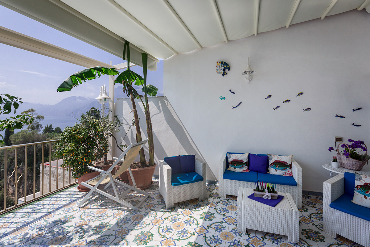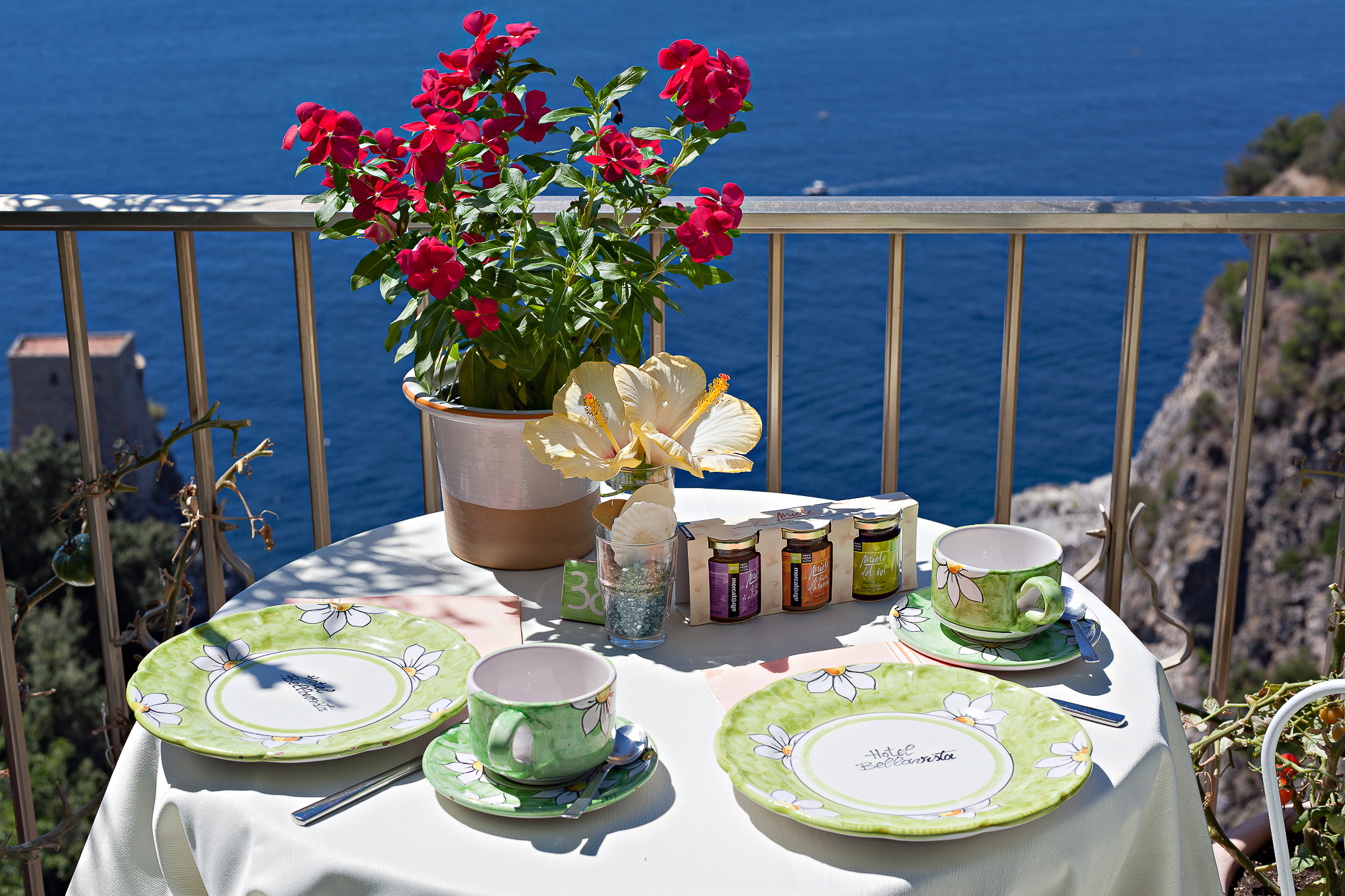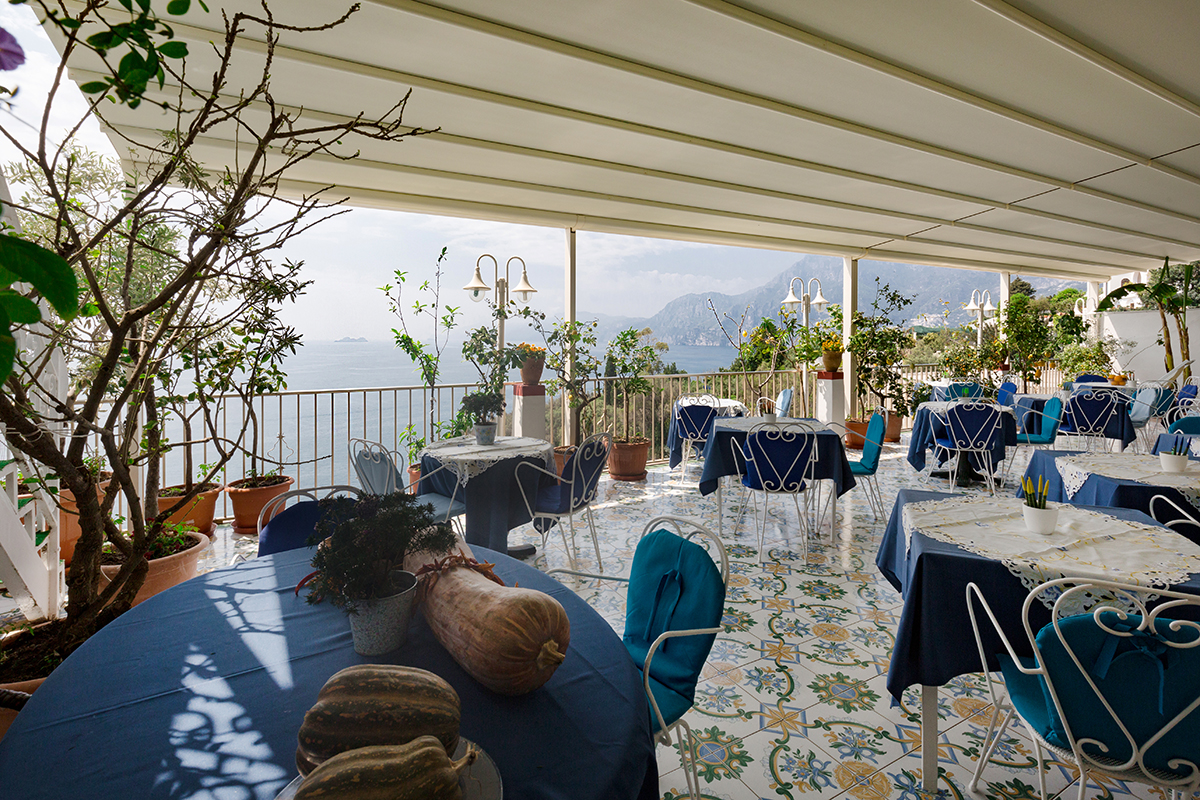 The rooms are spacious and sunny, with en-suite bathroom and terrace or balcony overlooking the sea and the island of Capri. They are equipped with T.V., hairdryer, air-conditioning and minibar. Four rooms are with no balcony and seaview. Everyroom has his own colour: yellow, pink, blue, typical colour of the AMALFICOAST. We have also an appartment for families.